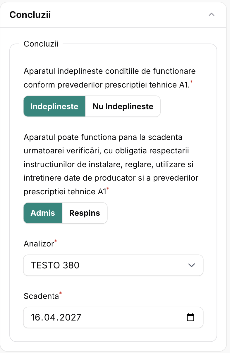 La completare se poate face import de fisier CSV de la un analizor TESTO